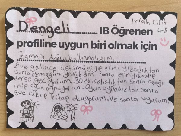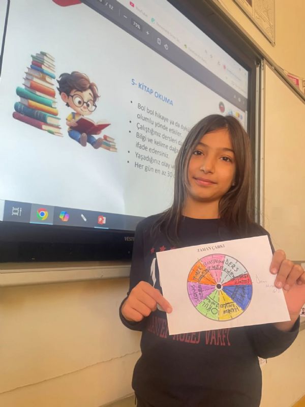 GKV Özel İlkokulu Rehberlik Birimi tarafından 4.sınıf öğrencilerimize "Etkili Ders Çalışma" konulu sınıf içi rehberlik etkinliği düzenlendi. Bu etkinlikle sağlıklı beslenme, yeterli uyku süresi, ek çalışma, ödevleri erken saatlerde yapma, kitap okuma, ekran süresi, planlı olma konu başlıkları ele alındı. "Zaman Çarkı" öğrenme deneyimi ile öğrencilerimiz zaman yönetimi konusunu somutlaştırdılar. Öğrencilerimizin öğrenme süreçlerine yönelik farkındalık kazanarak kendi öğrenme sorumluluklarını almaları hedeflendi.