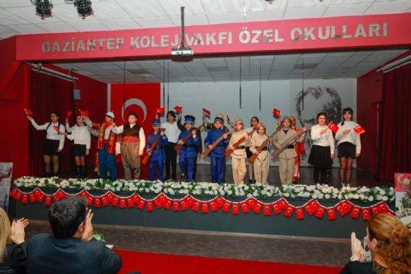 Saygı duruşu ve istiklal Marşı'nın ardından GKV Özel Ortaokulu Müdürü Sayın Seçil Güldemet'in konuşması ile başlayan tören, Dünya harbi sonrasında Antep'in işgal sürecini anlatan belgesel ile devam etti. GKV Özel Ortaokulu öğrencilerinin seslendirdiği duygusal mektuplar, Ahmet Can Çeteci ve öğrencilerimizin seslendirdiği 'Bahçalarda Mor Meni' isimli türkü, 'Şahin Bey ve Naciye' ardından 'Tüfekçi Yusuf ve Azap Osman'ın Hikayesi' isimli drama gösterisi ve 'Savaş Dansı' isimli dans gösterisinin ardından tören sona erdi.