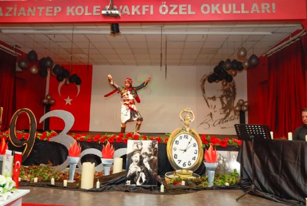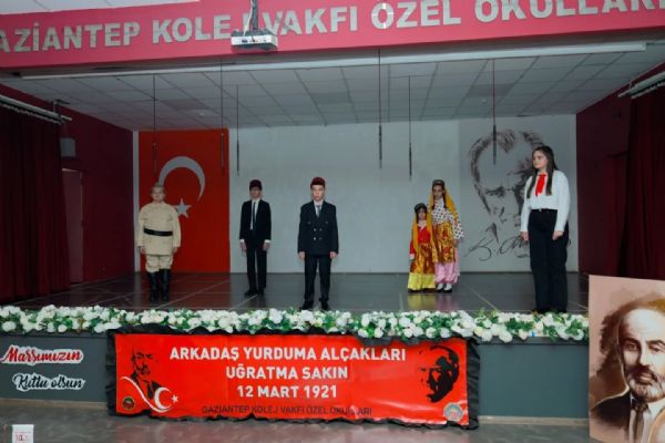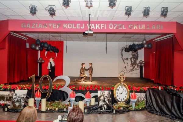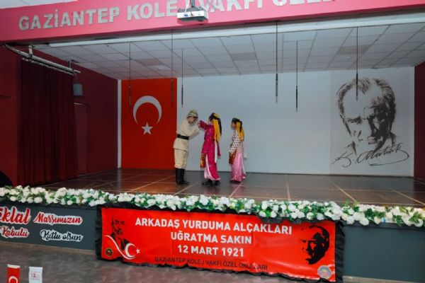 Saygı duruşu ve istiklal Marşı'nın ardından GKV Özel Ortaokulu Müdürü Sayın Seçil Güldemet'in konuşması ile başlayan tören, Dünya harbi sonrasında Antep'in işgal sürecini anlatan belgesel ile devam etti. GKV Özel Ortaokulu öğrencilerinin seslendirdiği duygusal mektuplar, Ahmet Can Çeteci ve öğrencilerimizin seslendirdiği 'Bahçalarda Mor Meni' isimli türkü, 'Şahin Bey ve Naciye' ardından 'Tüfekçi Yusuf ve Azap Osman'ın Hikayesi' isimli drama gösterisi ve 'Savaş Dansı' isimli dans gösterisinin ardından tören sona erdi.