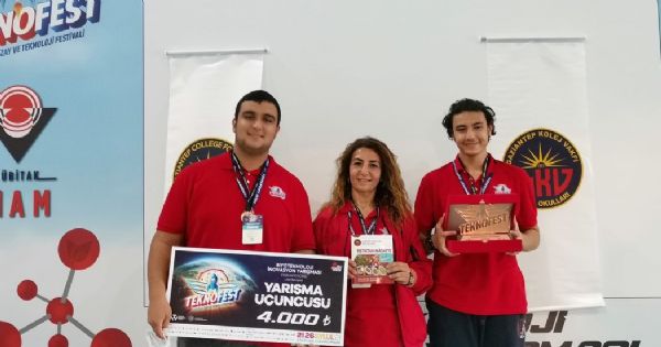 Türkiye’nin en büyük festivali Teknofeste, 2021 yılında 81 il, 111 ülke, 44.912 takım, 200.000 genç başvurmuş ve 13.000 proje finale kalmıştır. Biyoteknolojik İnovasyon kategorisinde 750 başvurudan, 85 proje kabul görmüş ve Gaziantep Kolej Vakfı Özel Okulları BİYOMEDİKAL takımı lise fikir seviyesinde 3. olmuştur. “Fıstıktan Maskeye” adlı projeleriyle, atık fıstık kırmızı kabuklarıyla maske elde eden takımımızı, proje danışmanımız Şule Kozanoğlunu, öğrencilerimiz, Umut Kozanoğlu, Tolga Tiryaki, Berke Şekeroğlunu tebrik eder, başarılarının devamını dileriz.