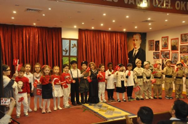 Anaokulu tiyatro salonunda yapılan Cumhuriyet Bayramı Kutlama töreninde İstiklal Marşı ve saygı duruşunun ardından Çiçekler Sınıfı öğrencileri, ‘Atatürk ve Cumhuriyet Ağacı’ isimli programı sundular. Mavi Boncuklar Sınıfı geleceğin büyükleri olarak Ata’ya Söz Veriş’i canlandırdılar. Balıklar ve Yıldızlar sınıflarının hazırladığı koro ile öğrenciler marşlar eşliğinde bayram coşkusunu yaşadılar. Hafta süresince okulda marşlar çalındı.