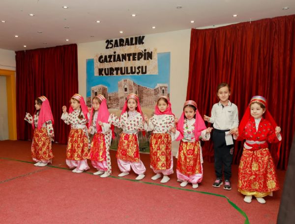 Gaziantep Kolej Vakfı Özel Anaokulu Konferans Salonunda düzenlenen, GKV Özel Anaokulu öğrencilerinin hazırladığı “25 Aralık Gaziantep'in Kurtuluşu” töreni, Gaziantep Kolej Vakfı Yönetim ve Mütevelli Kurulu Başkanı Sayın Esra İbanoğlu, Gaziantep Kolej Vakfı Yönetim ve Mütevelli Kurulu Üyeleri, Gaziantep Kolej Vakfı Özel Okulları Genel Müdürü Sayın Fevzi Gürsel, idarecilerimiz, öğretmenlerimiz ve velilerimizin katılımı ile gerçekleşti.