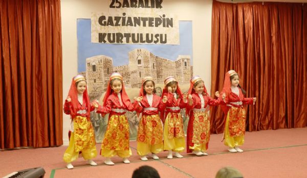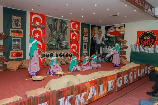 Gaziantep halkının 92 yıl önce yaşadığı kurtuluş mücadelesini drama yoluyla büyük bir olgunlukla sahneleyen minik GKV’liler izleyicilere duygulu anlar yaşattı. Kurtuluş mücadelesinin ardından zafer coşkusu sırasında yaşananları simgeleyen Gaziantep yöresine ait Halk oyunu gösterisi ile program sona erdi. İstiklal Savaşımızın sembolü olan Gaziantep’in kahramanlık mücadelesini küçük yaşta öğrenmeye başlayan ve bunu büyüklerine sunan GKV’li minik öğrencilerimizi bu anlamlı gösterileri için kutlarız.