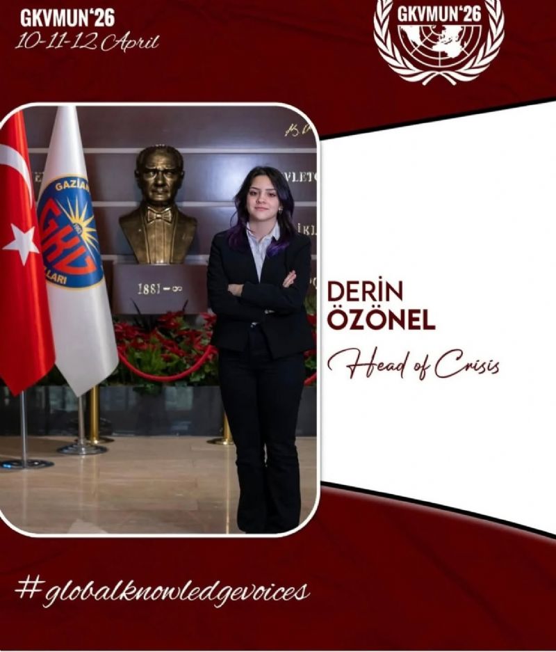 Derin Özönel serves as the backbone of the crisis department, ensuring that every scenario unfolds with precision and impact. With a sharp analytical mind and a natural talent for strateaic thinking, Derin navigates high-pressure situations with remarkable ease. Their hard work guarantees a fast-paced, professional, and immersive experience for all participants. #gkvmun26
