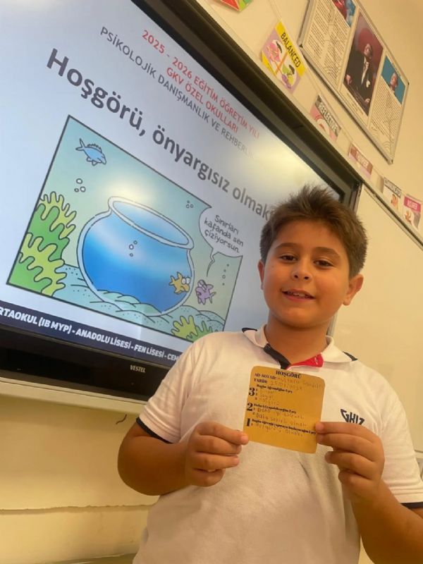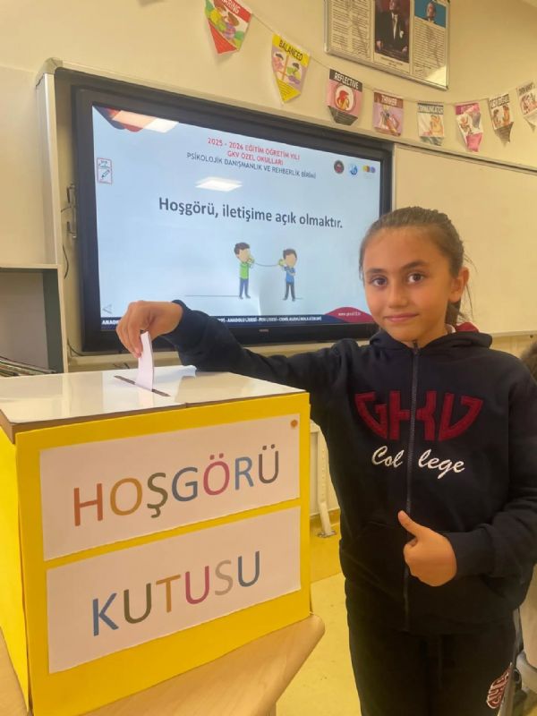 GKV Özel İlkokulu Rehberlik Birimi tarafından 4.sınıf öğrencilerimize yönelik “HOŞGÖRÜ” temalı rehberlik dersi gerçekleştirildi. Öğrencilerimiz her bireyin ilgi ve yeteneklerinin farklı olduğunu hatırladı ve bu farklılıkların hayatımıza nasıl renk kattığı ile ilgili duygu ve düşüncelerini arkadaşları ile paylaştı. Tema kapsamında hazırlanan “Hoşgörü Kutusu’na” hafta boyunca gözlemledikleri hoşgörülü davranışları yazıp, paylaştılar. Bu eylem ile akran ilişkilerinde saygı, anlayış ve güveni güçlendirmek amaçlandı.