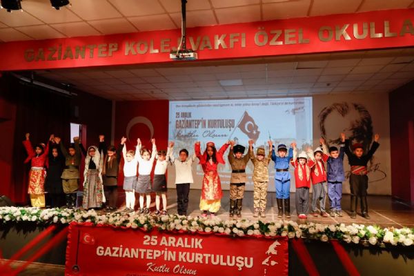 Gaziantep Kolej Vakfı Özel Okullarında düzenlenen “25 Aralık Gaziantep'in Kurtuluşu” Töreni, Gaziantep Kolej Vakfı Yönetim ve Mütevelli Kurulu Başkanı Sayın Esra İbanoğlu, GKV Özel Okulları Genel Müdürü Sayın Fevzi Gürsel, akademik kadroyu oluşturan müdürler, veliler ve öğrencilerimizin katılımı ile düzenlendi. Tören saygı duruşu ve İstiklâl Marşı'nın ardından GKV Özel İlkokul Müdürü Sayın Ali Dirgen'in konuşması ile devam etti.