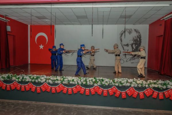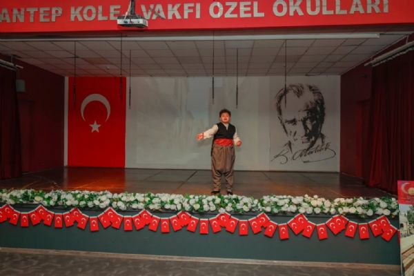 Saygı duruşu ve istiklal Marşı'nın ardından GKV Özel Ortaokulu Müdürü Sayın Seçil Güldemet'in konuşması ile başlayan tören, Dünya harbi sonrasında Antep'in işgal sürecini anlatan belgesel ile devam etti. GKV Özel Ortaokulu öğrencilerinin seslendirdiği duygusal mektuplar, Ahmet Can Çeteci ve öğrencilerimizin seslendirdiği 'Bahçalarda Mor Meni' isimli türkü, 'Şahin Bey ve Naciye' ardından 'Tüfekçi Yusuf ve Azap Osman'ın Hikayesi' isimli drama gösterisi ve 'Savaş Dansı' isimli dans gösterisinin ardından tören sona erdi.